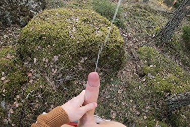 Застал незнакомку за мастурбацией в лесу и сразу достал член
