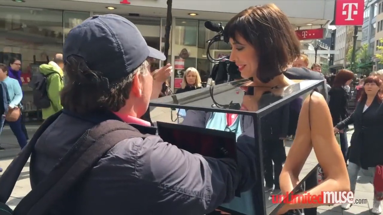 Красотка Мило даёт потрогать свои сиськи и клитор на улице